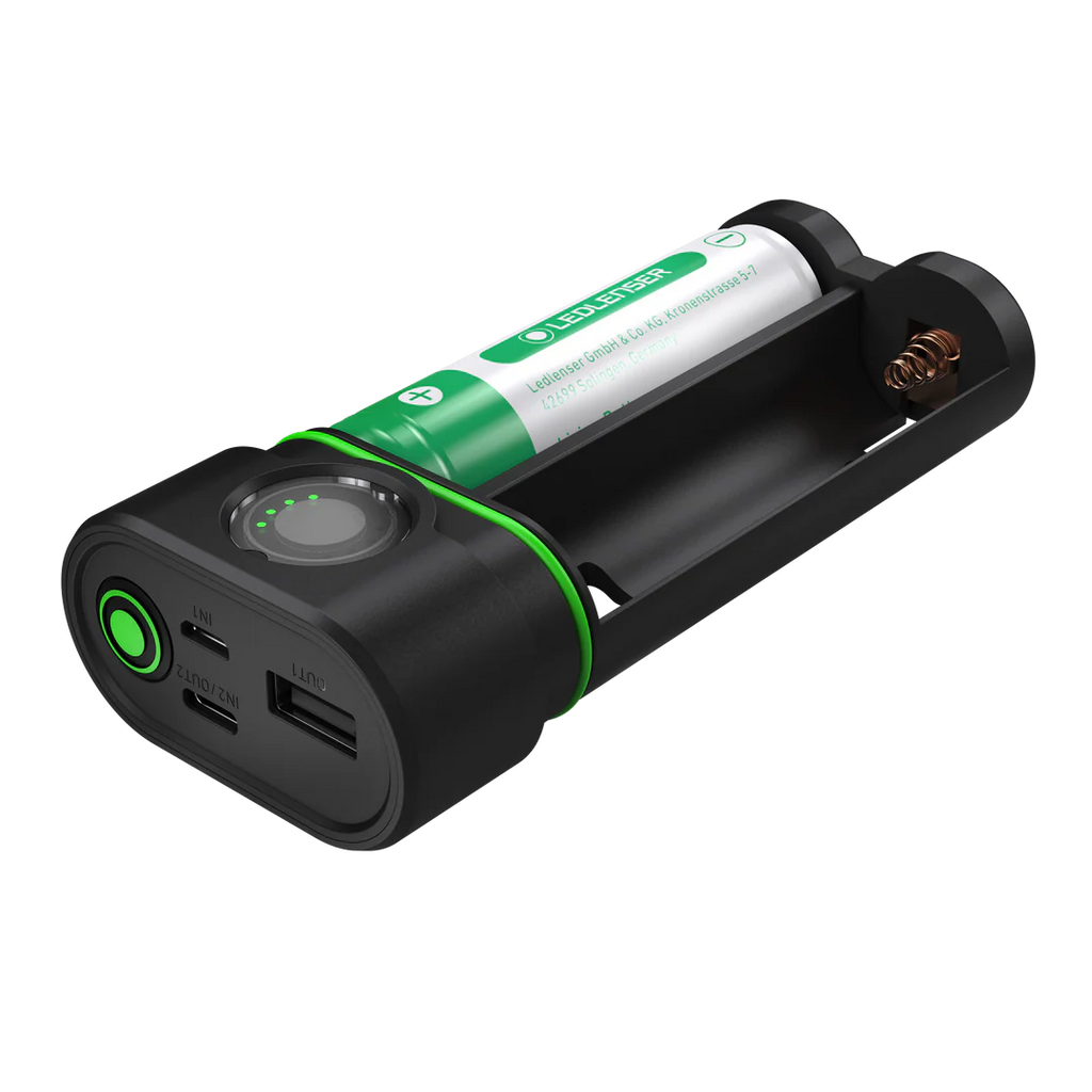 The Ledlenser FLEX10 Powerbank offers six functions in a robust and water-resistant housing: powerbank, battery charger with charge level indicator, secure battery storage, display for capacity check, double protection against short circuits and fast battery replacement. The FLEX10 Powerbank contains x2 batteries type 21700 (included) for a capacity of 9000mAh.